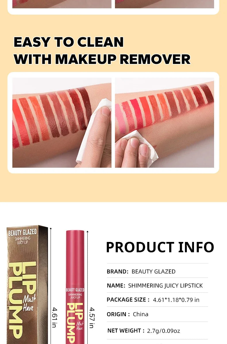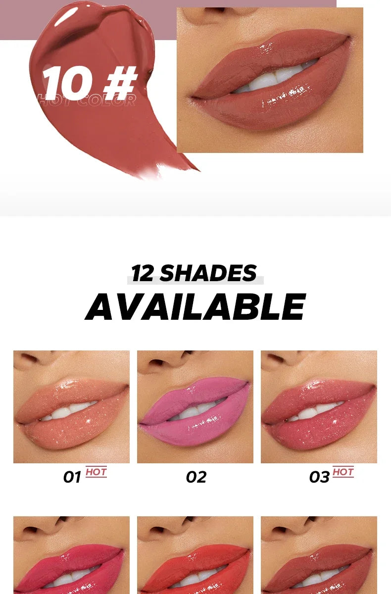 12 Color Beauty Glazed Shimmering Juicy Lipstick Set Moisturizing Nourishing Lip Plump for Women Girl's Gift Juicy Lip Makeup