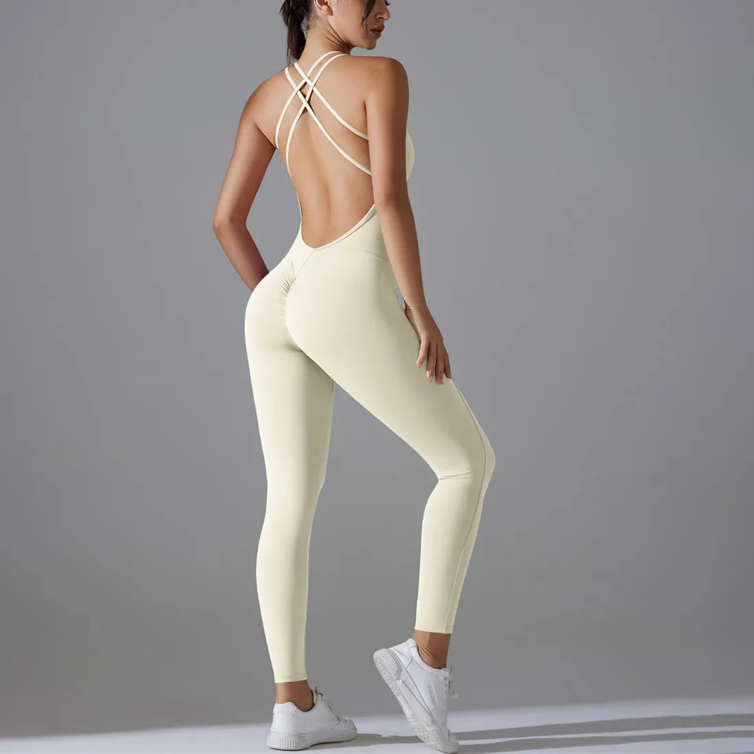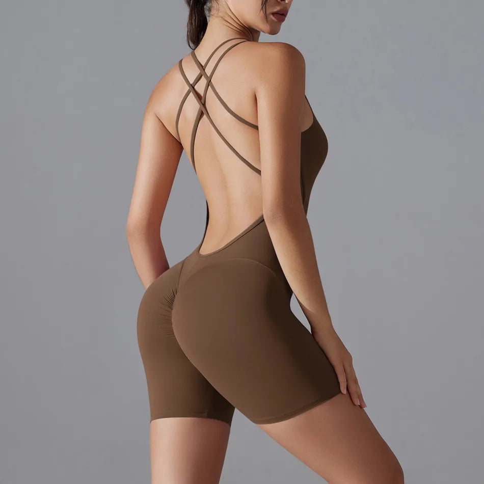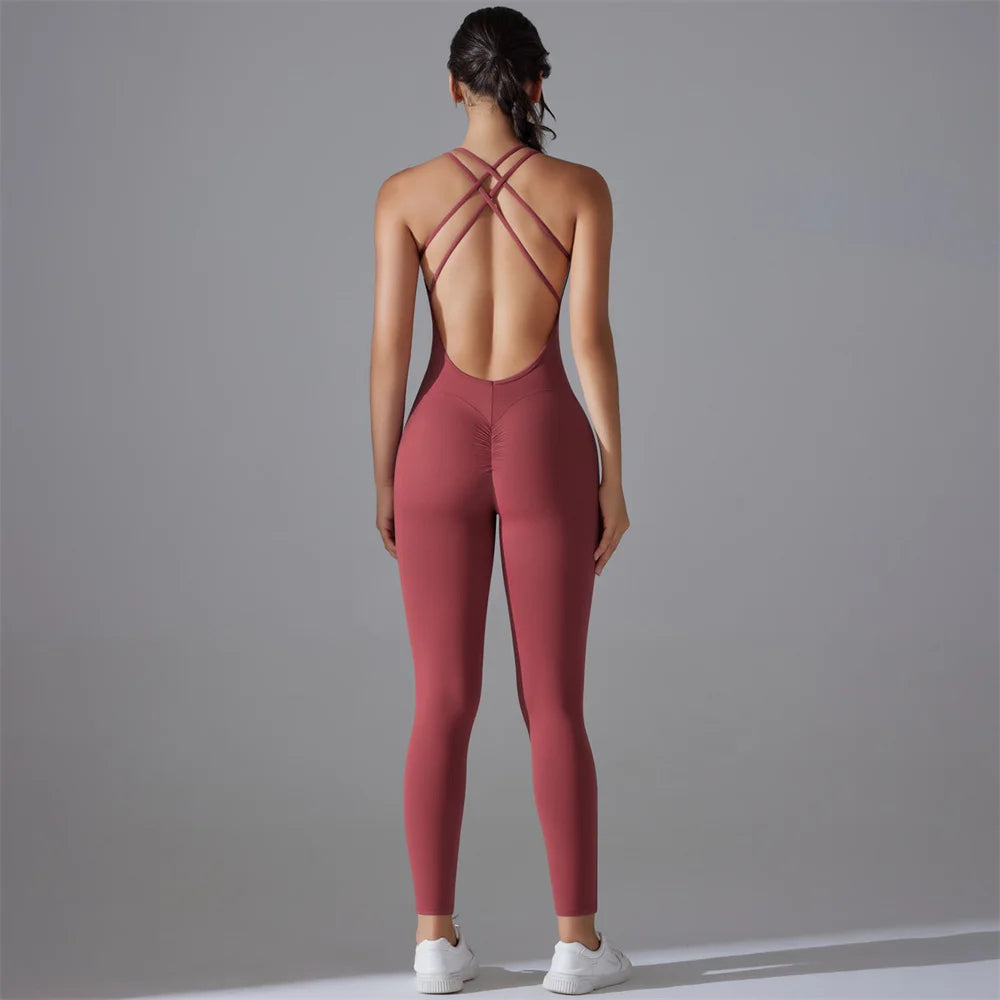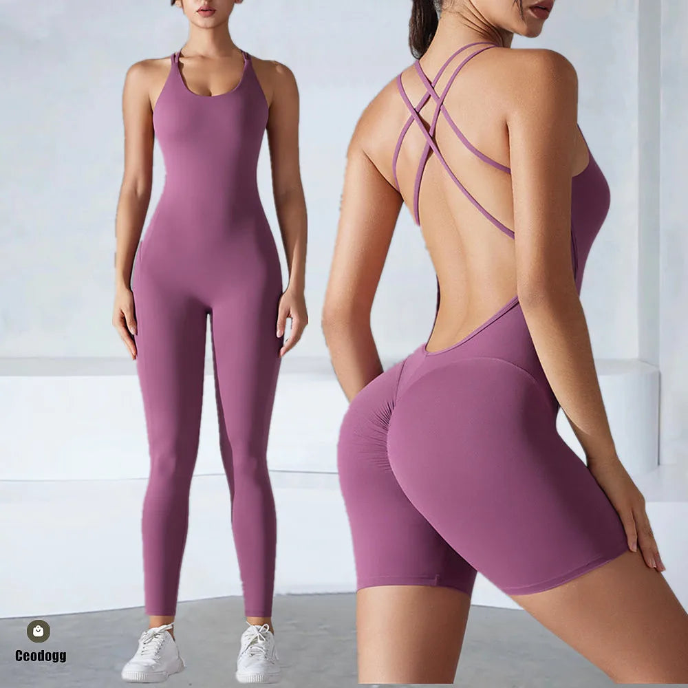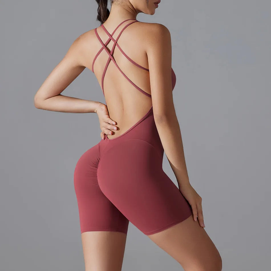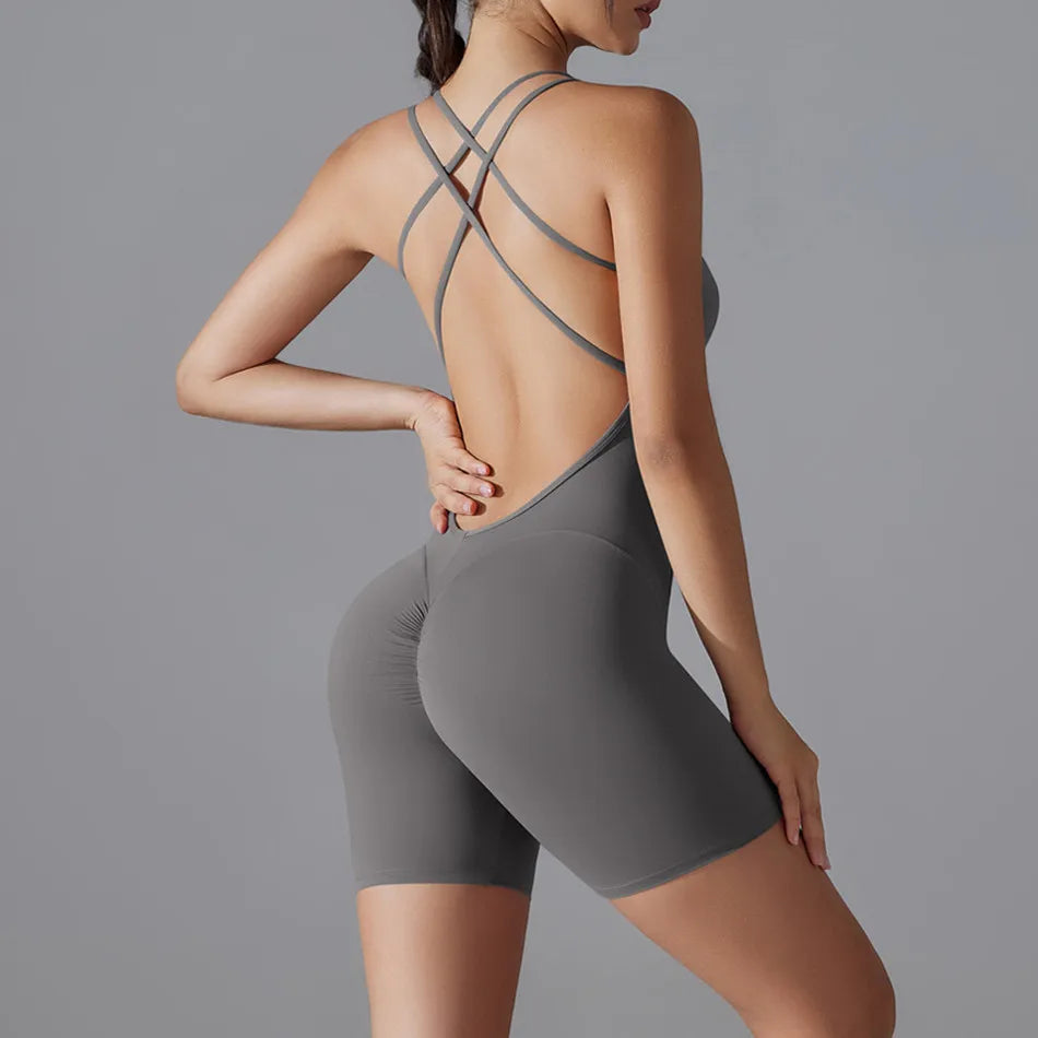 Plus Size Deep V Bodysuits Sports Women Gym Rompers Yoga Set Scrunch Legging Workout One-Piece Jumpsuit Suit Active Wear XP307