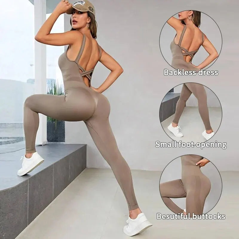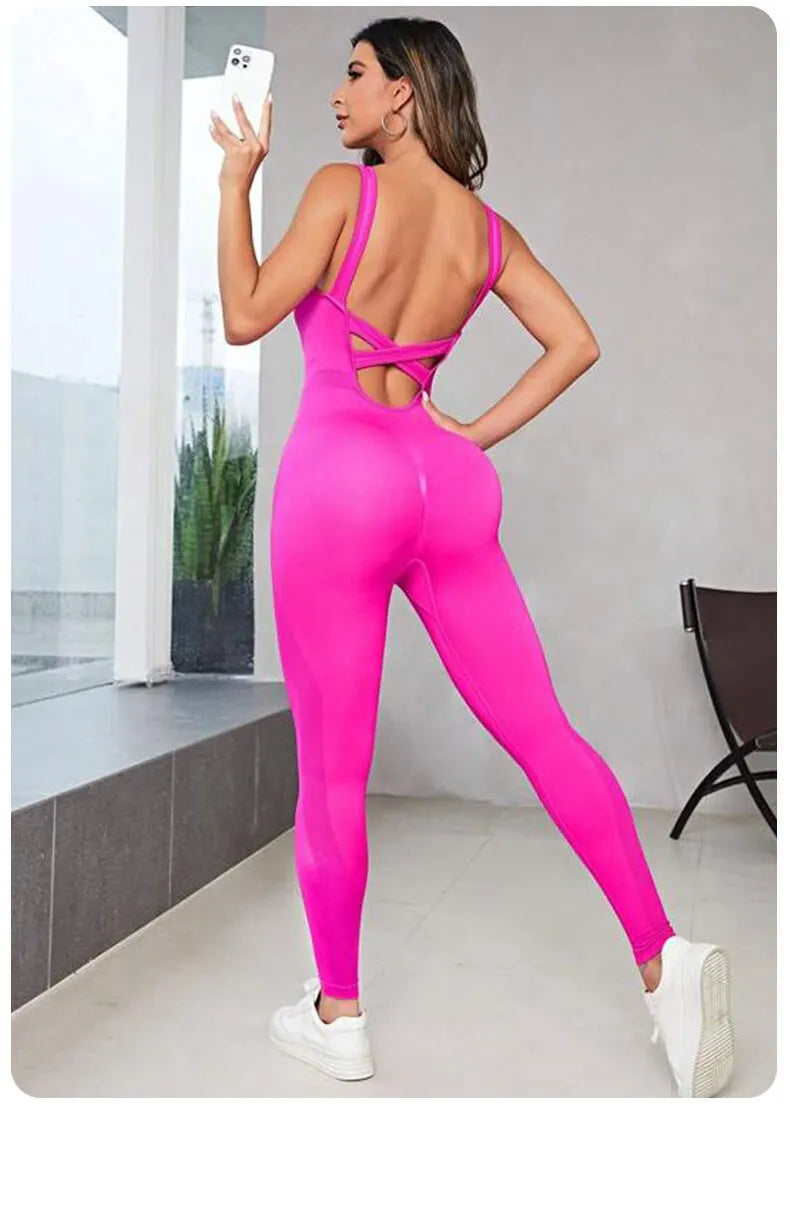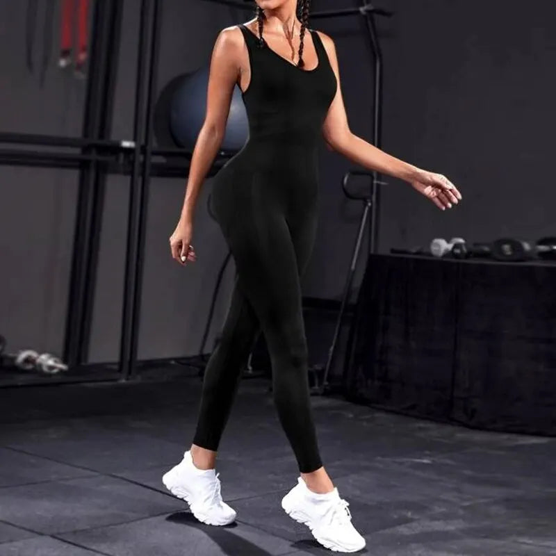 Solid Sleeveless Backless Low Neck High Waist Bodycon Jumpsuits For Women Casual Rompers Activity Jogger Suits Backless Bodysuit