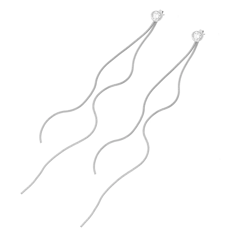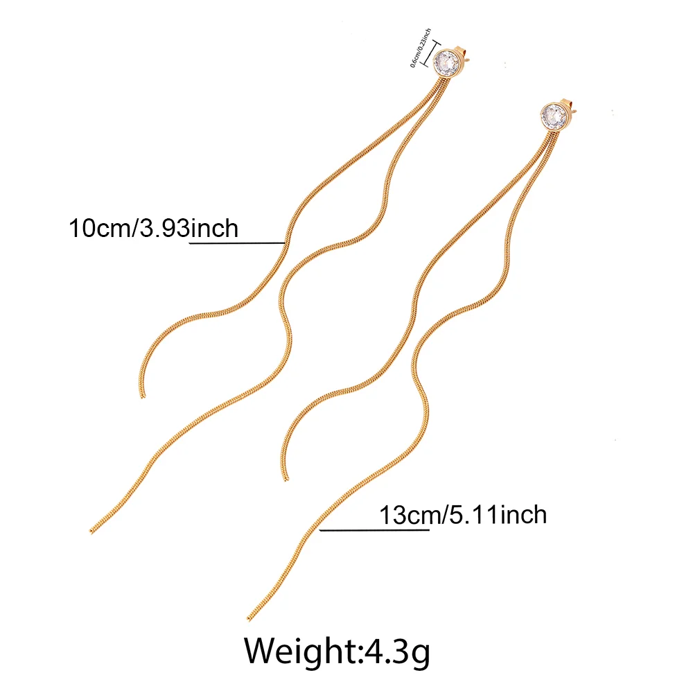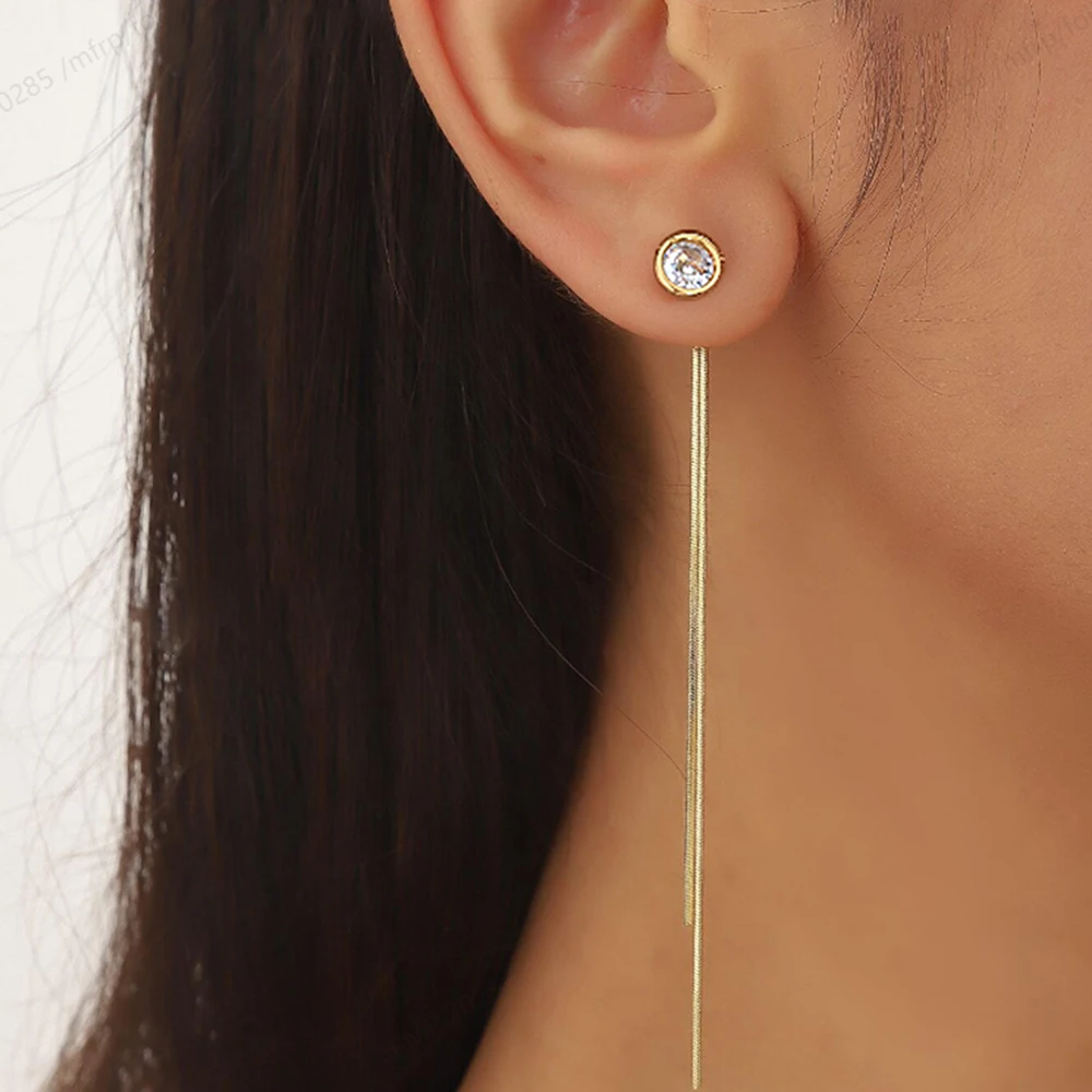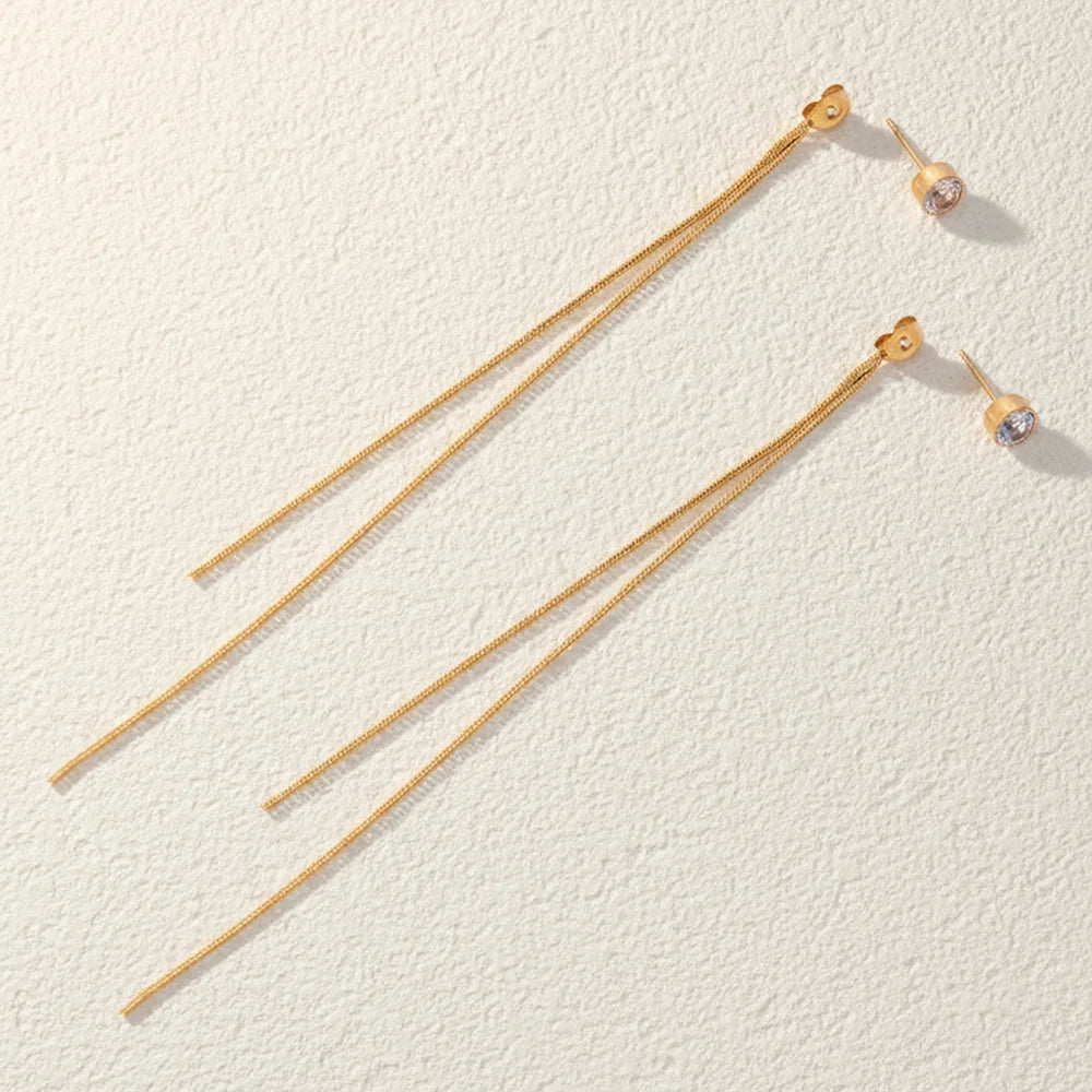 Stainless Steel Fashion Minimalist Zirconia Stud Earrings With Long Tassel Women&