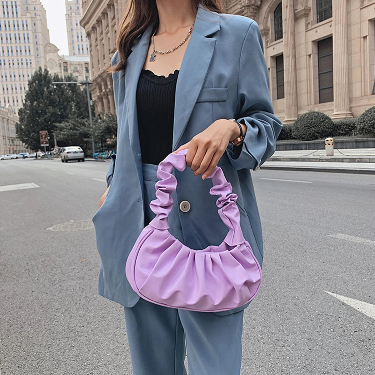 Fashion Pleated Handlebags for Women PU Cloud Bags Leisure Armpit Bag Shopping Shoulder Bags Dumpling Handbag Female Hand Bags