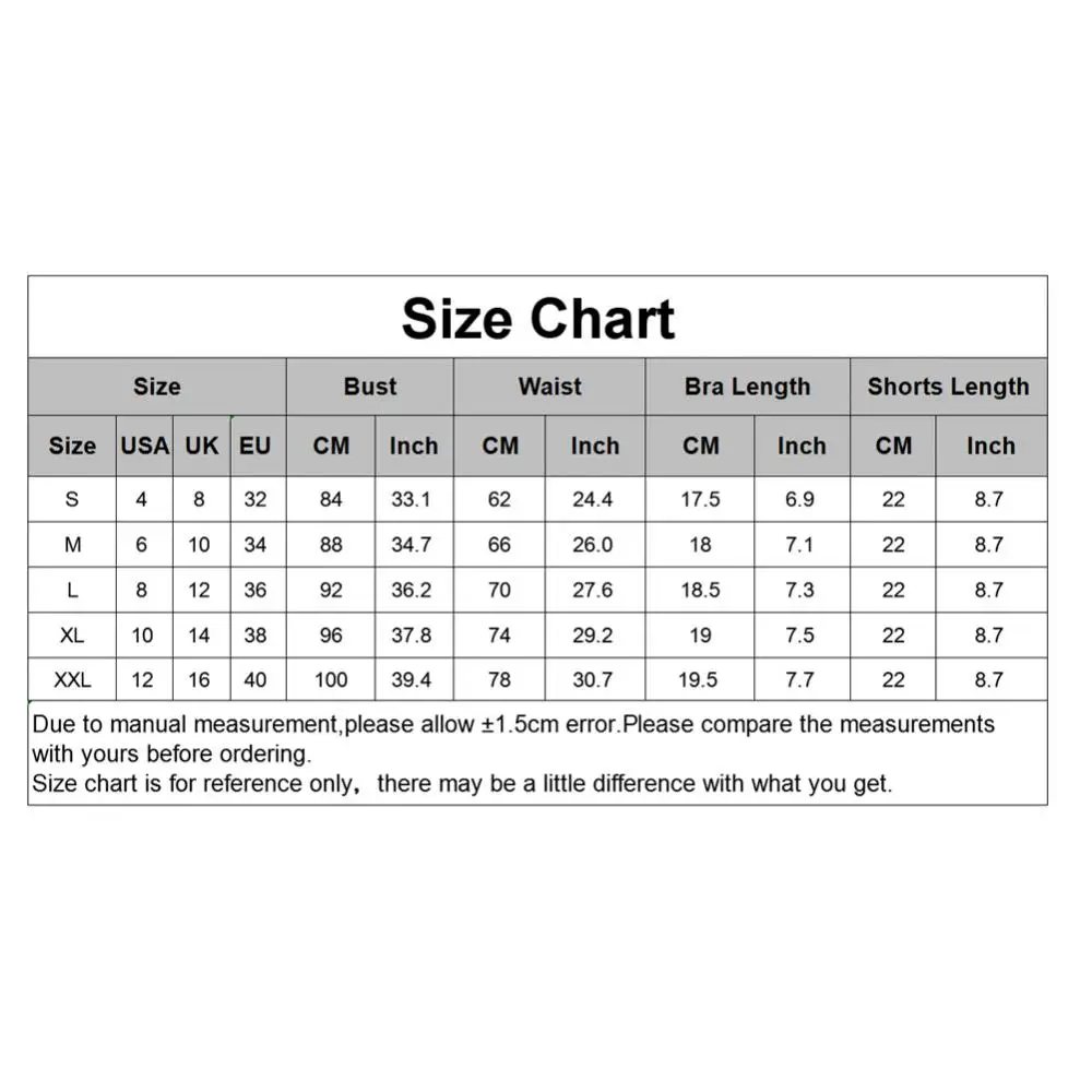 [Our Size XXL] Bust: 100cm/36.2", Waist: 78cm/27.6", Bra Length: 19.5cm/7.7", Briefs Length: 22cm/8.7" (Approx.)