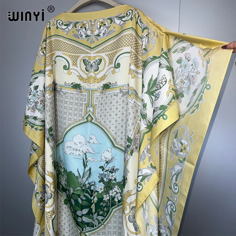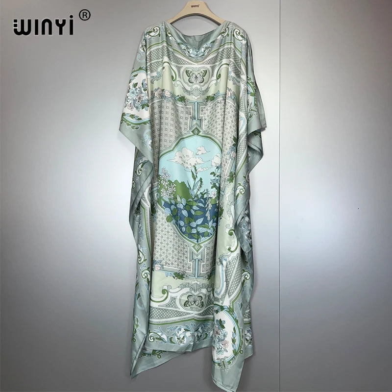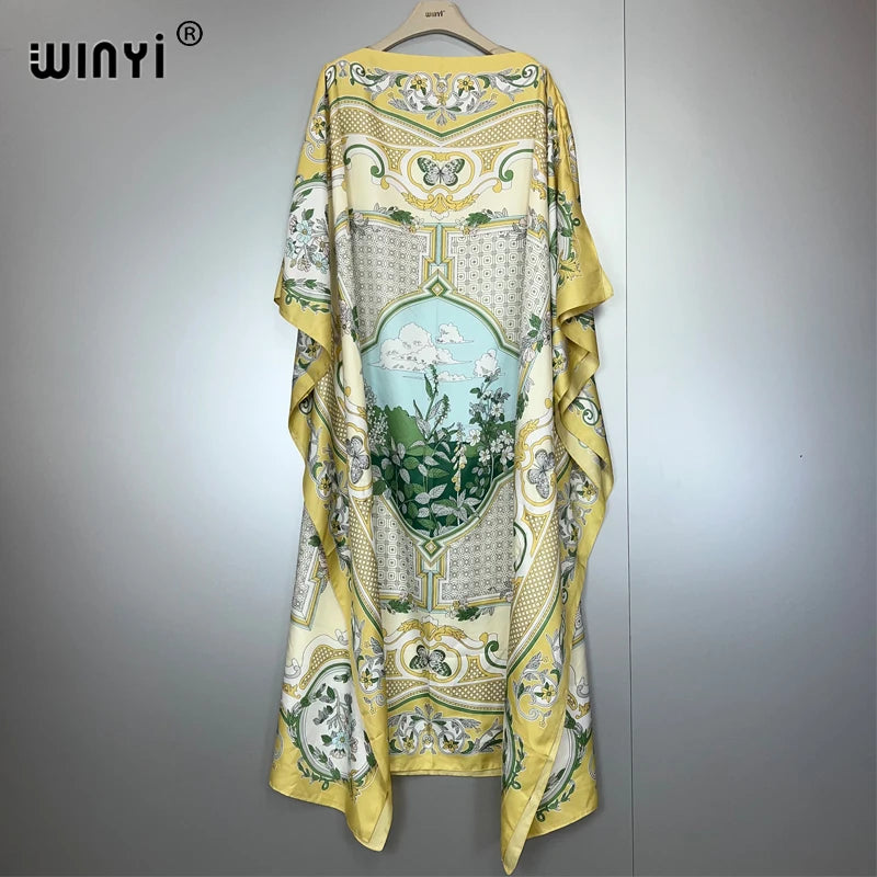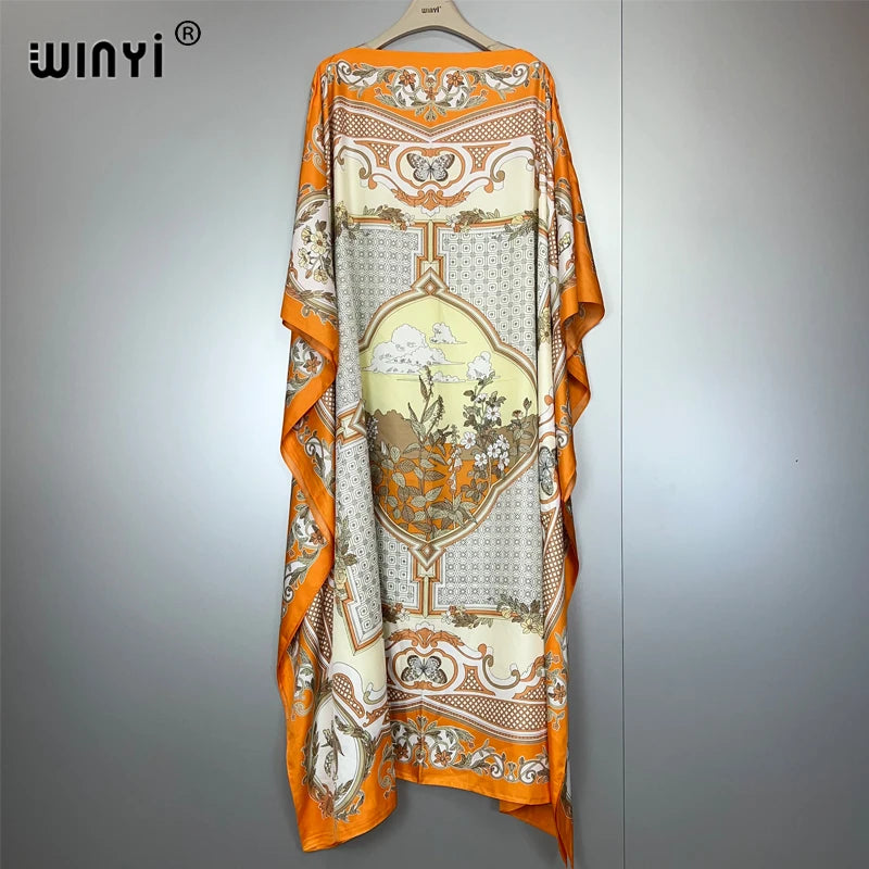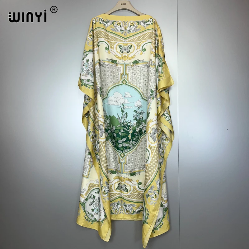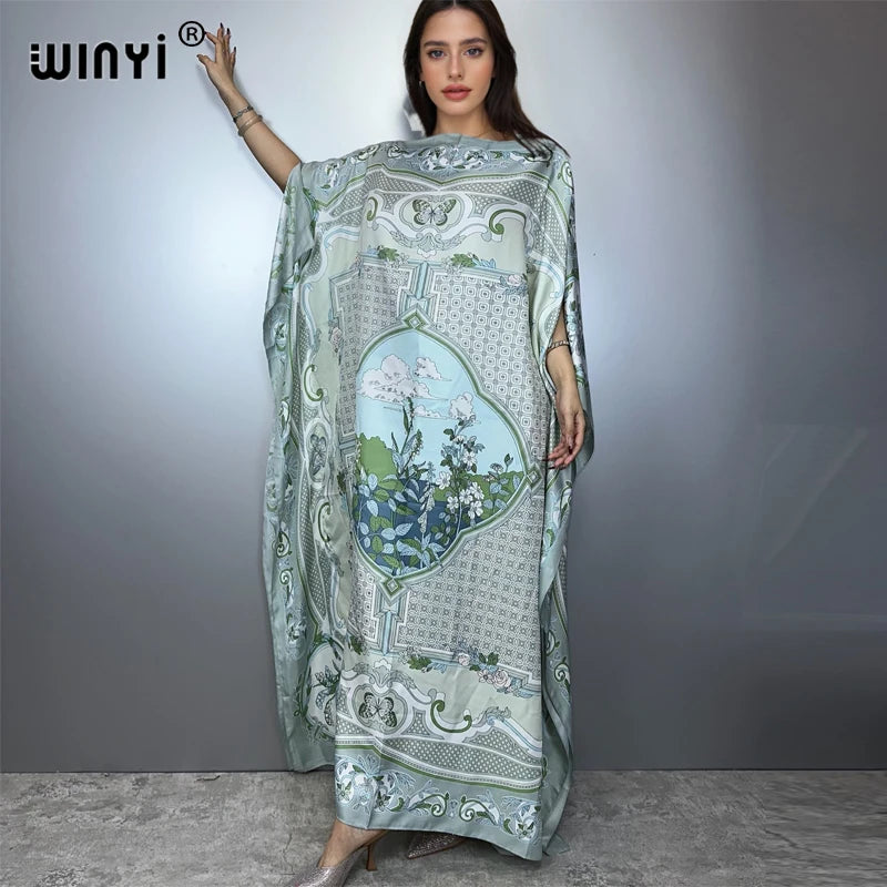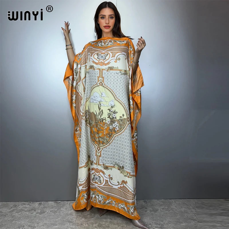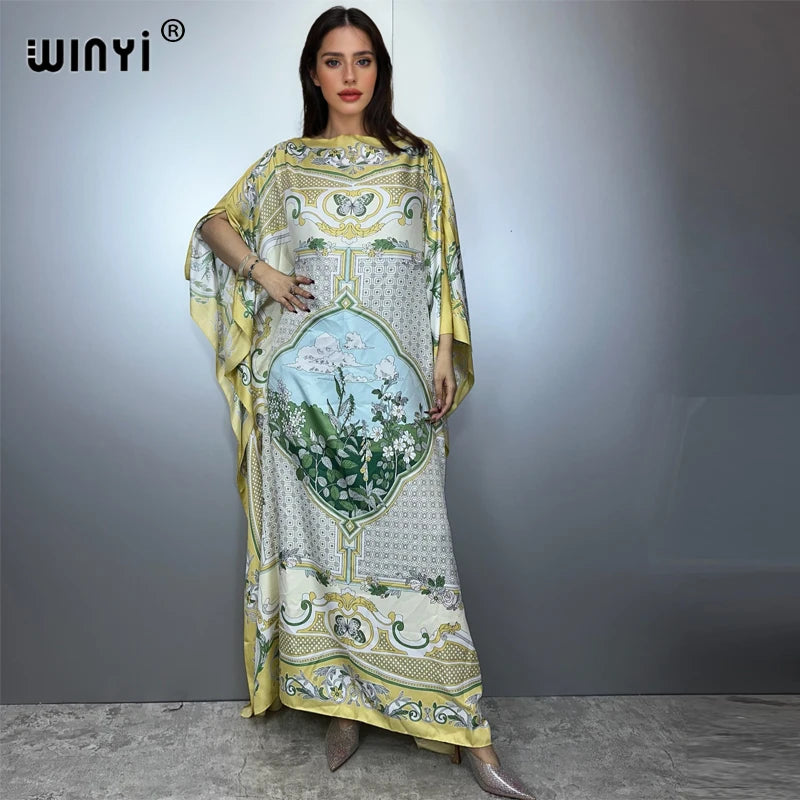 WINYI high quality africa clothing free size women Fashion boho print Kaftan Maxi abaya dubai luxury muslim women african dress