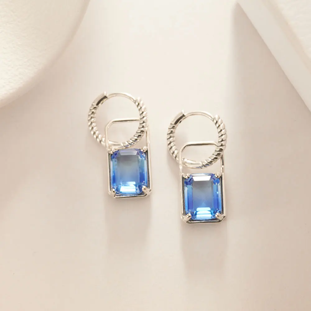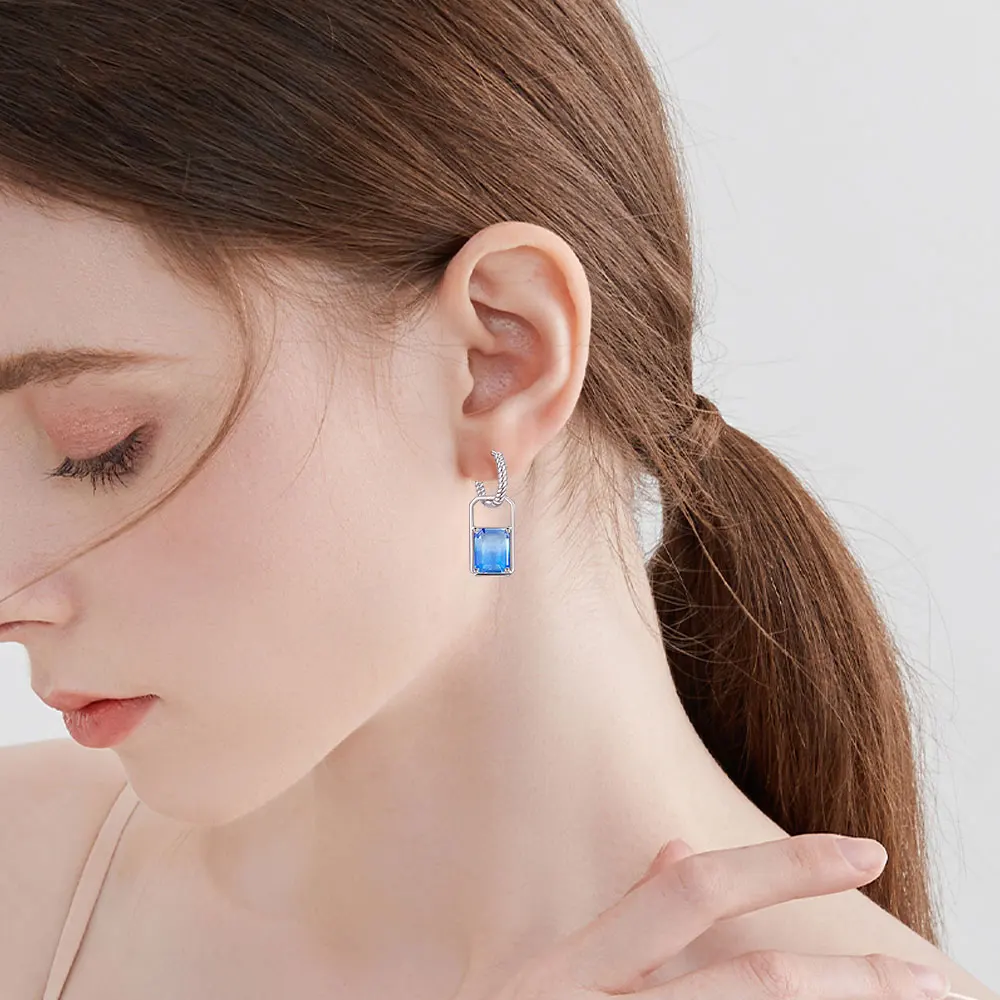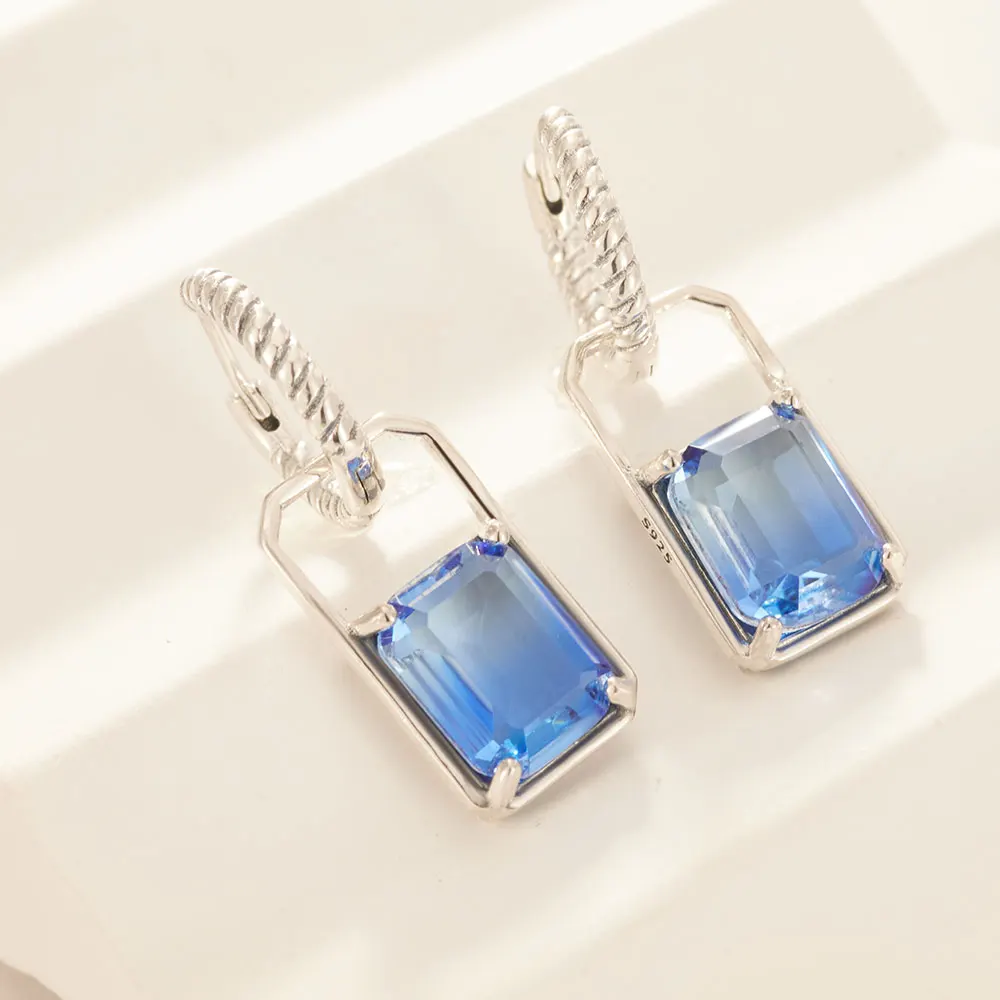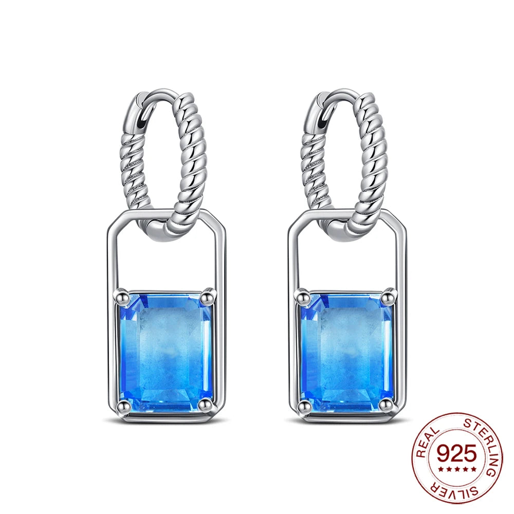 2025 925 Sterling Silver Earrings Sapphire Square Earrings Original Earring For Ladies Fashion Friends Party Daily Wear Gifts