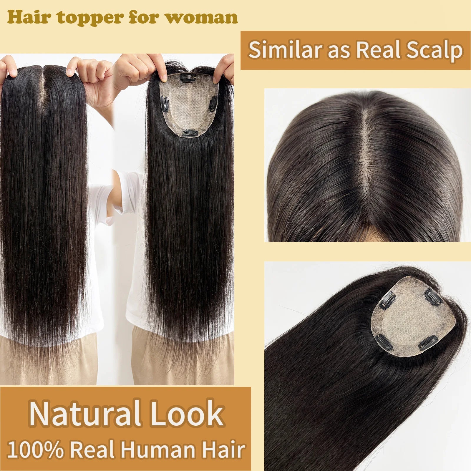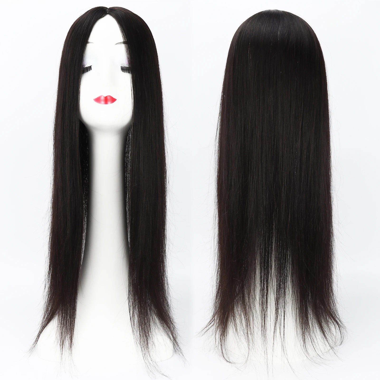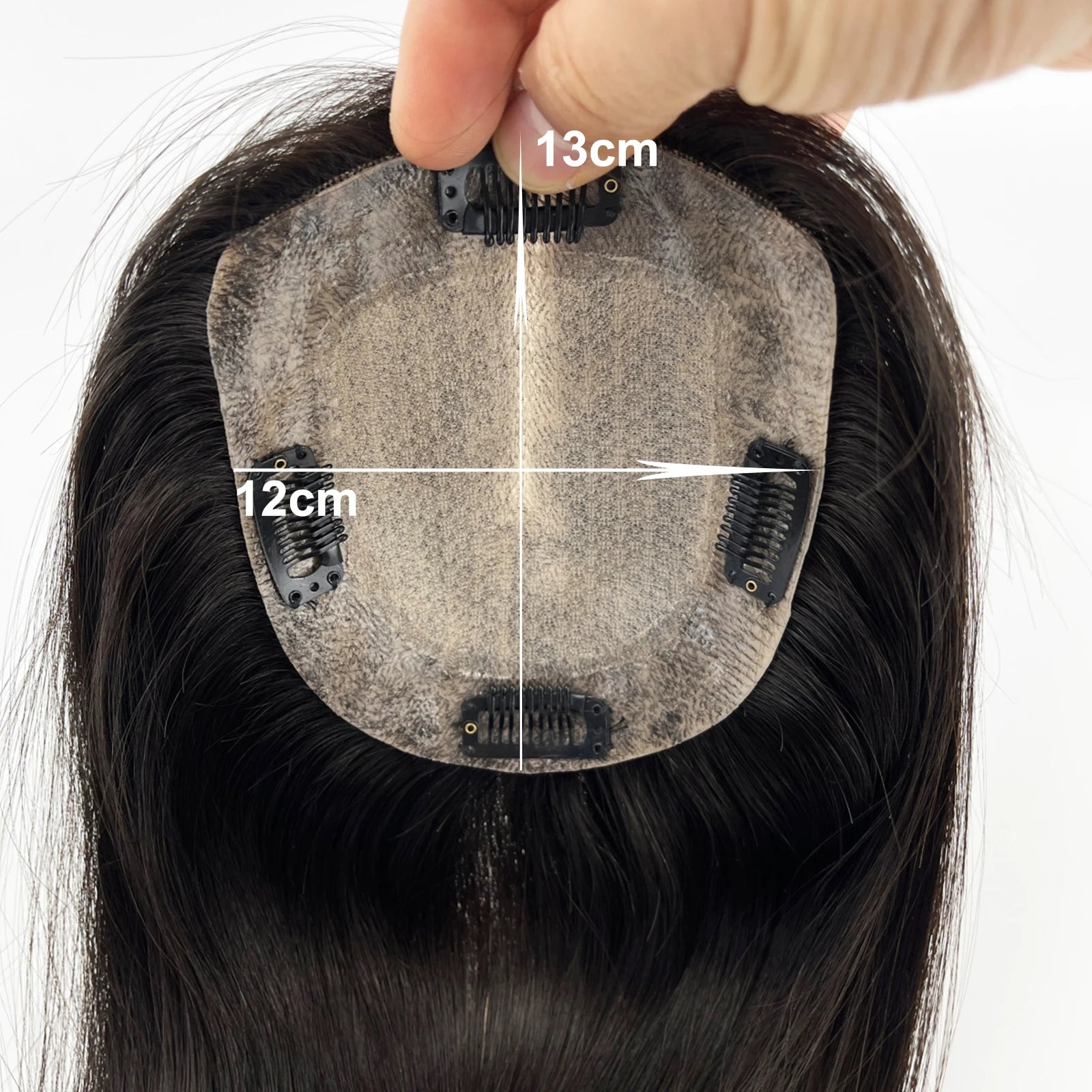 24" Human Hair Topper 12x13cm Silk Base 2cm PU around 150% Desnity Real Remy Human Hair Straight Soft Hairpiece with Clips in