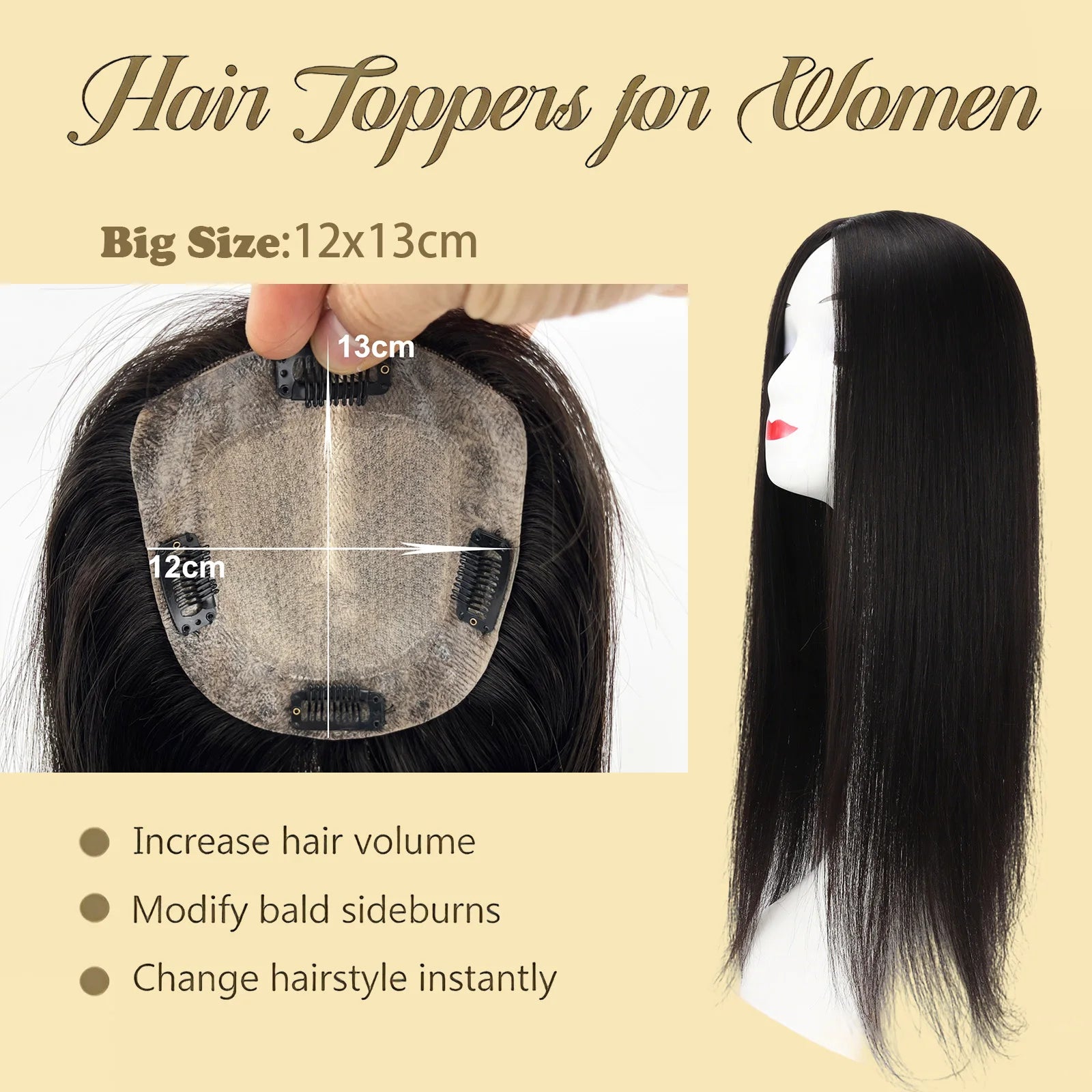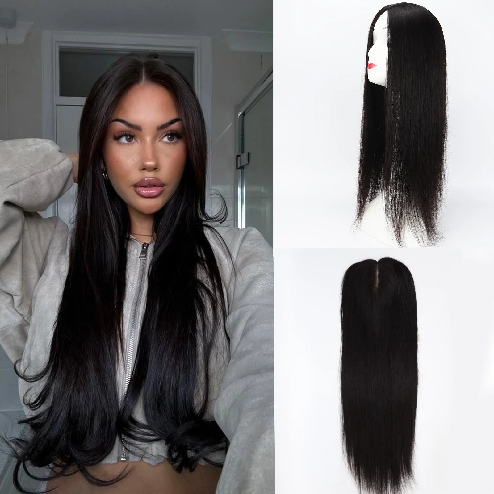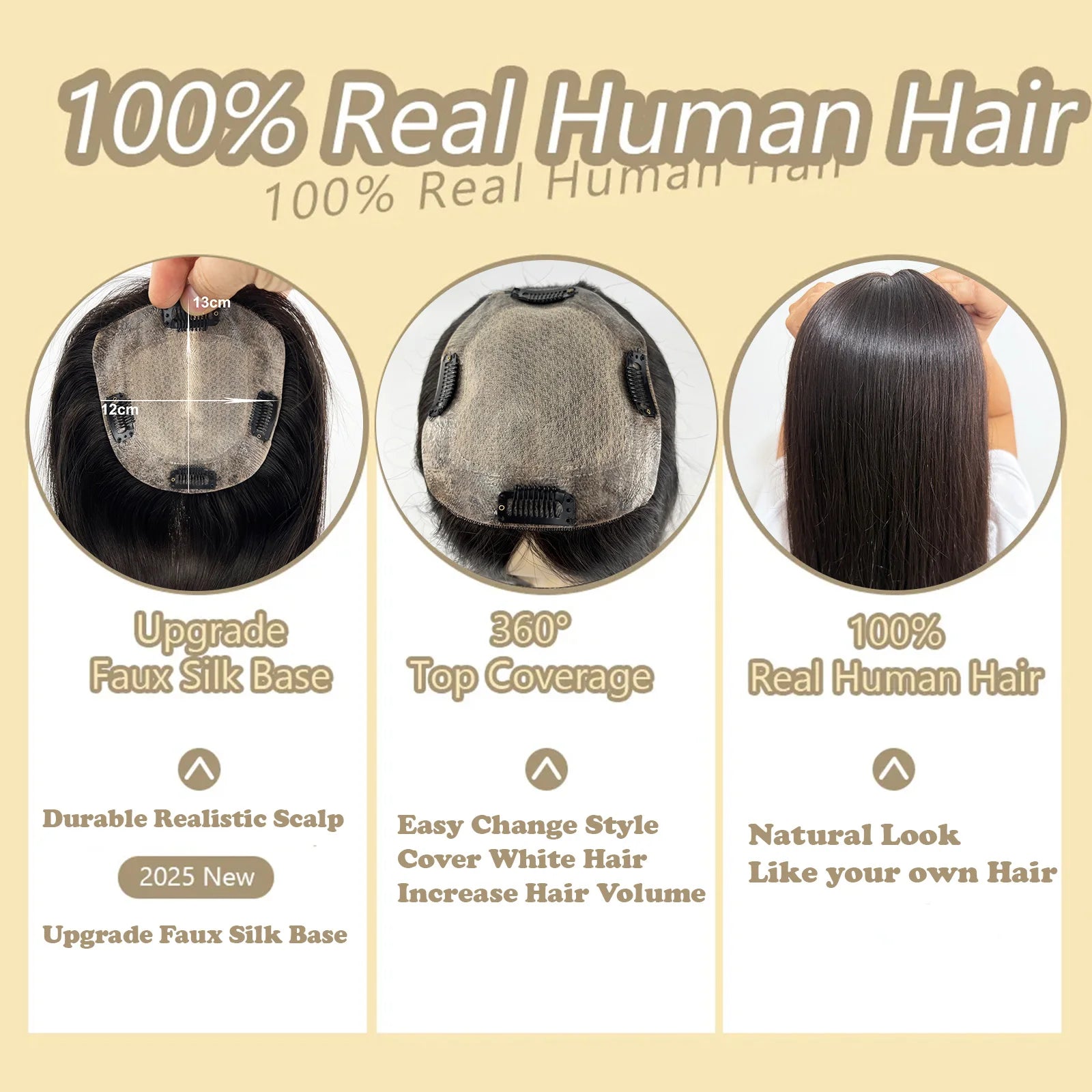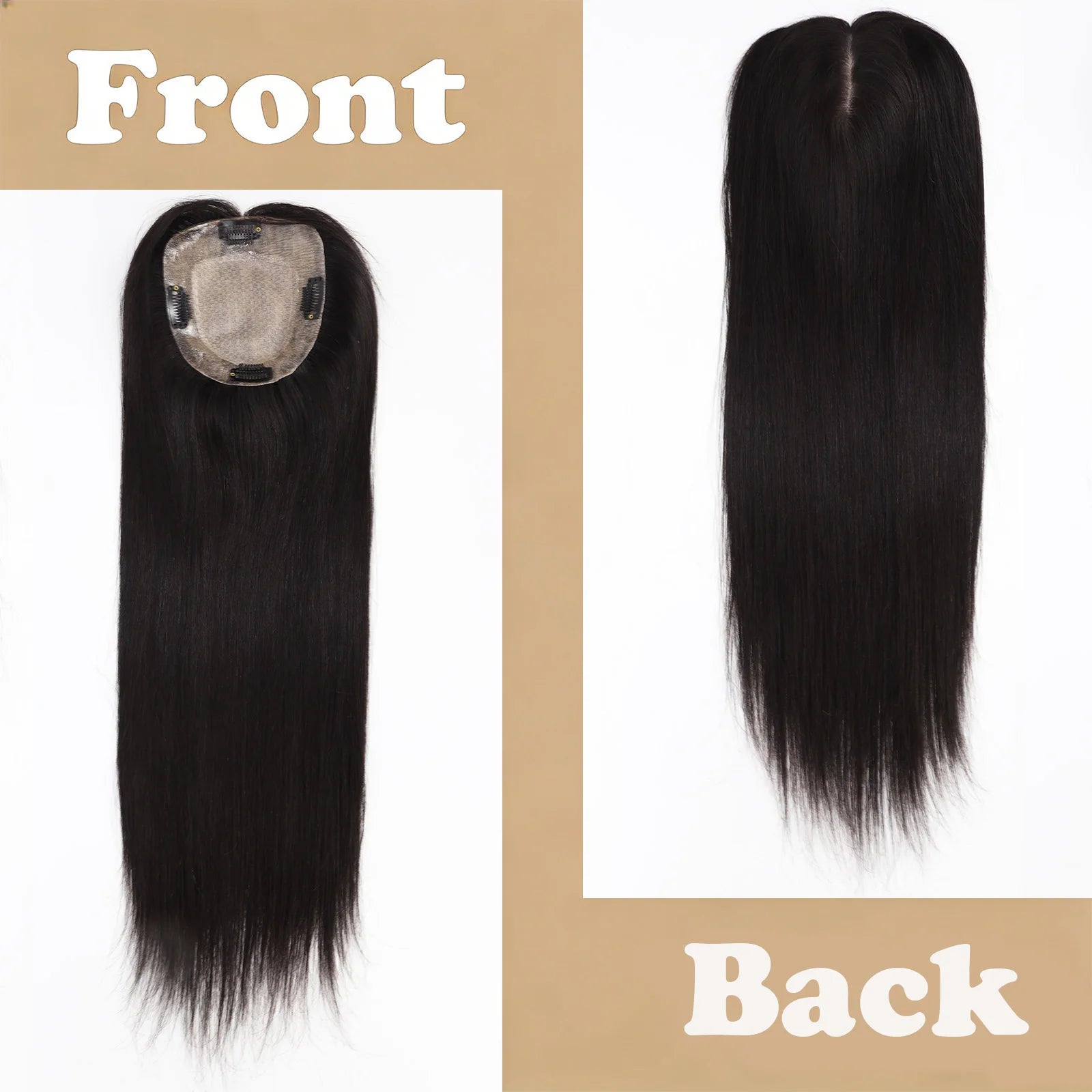24" Human Hair Topper 12x13cm Silk Base 2cm PU around 150% Desnity Real Remy Human Hair Straight Soft Hairpiece with Clips in