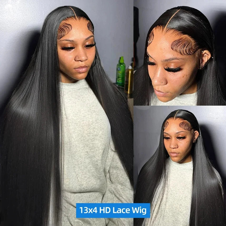 30 40 Inch Bone Straight 13x6 Lace Frontal Wigs 13x4 HD Transparent Lace Front Wig Black Preplucked Brazilian Human Hair Wig100%
