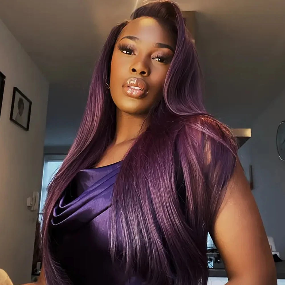 30 Inch Long Straight Synthetic Lace Front Wig Wear To Go Glueless Wig Dark Burgundy 13X4 Synthetic Lace Front Wigs for Women