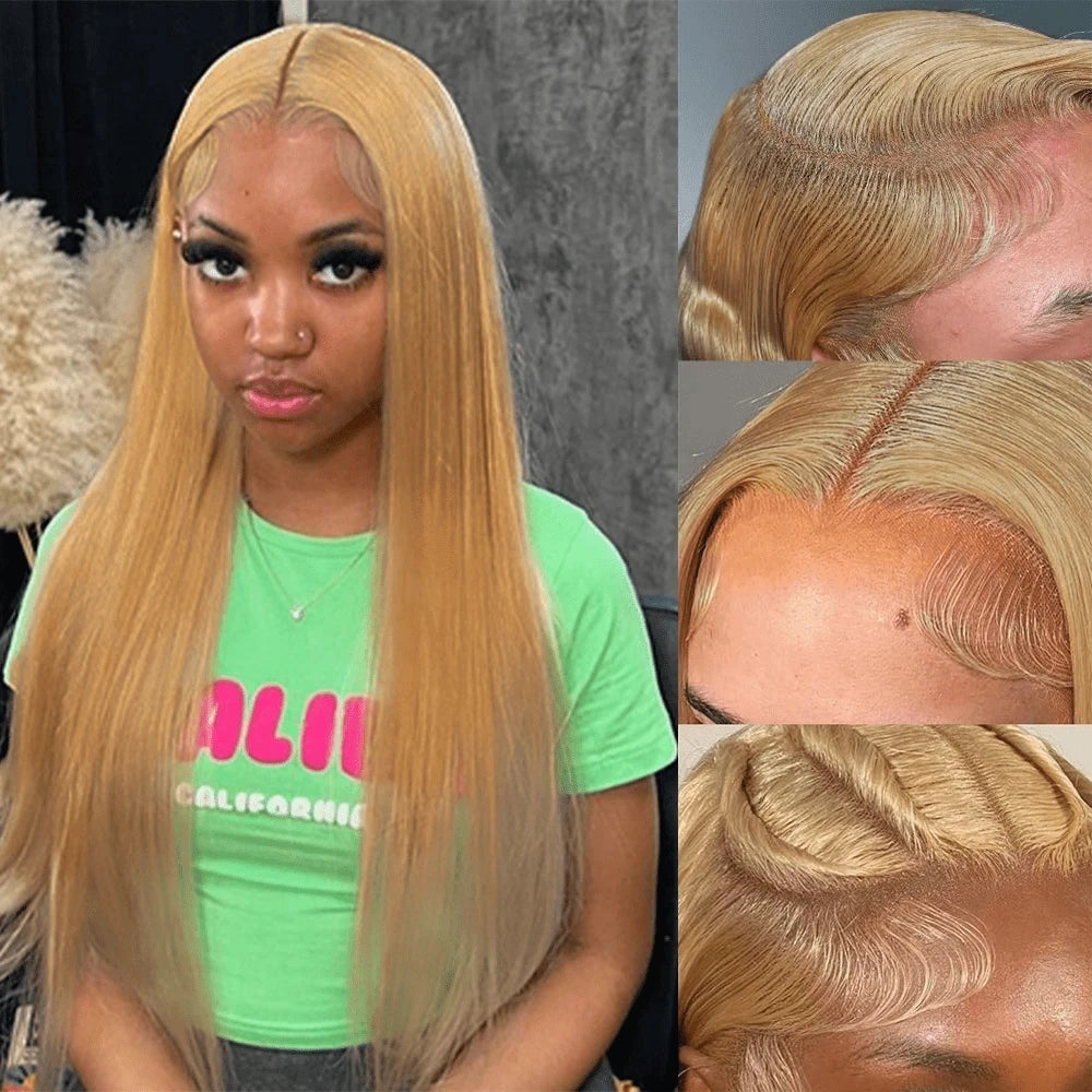 36 Inch Honey Blonde Human Hair Wig Straight 13x6 HD Lace Front Wig 180% Density 13x4 Lace Wigs Brazilian Human Hair 27