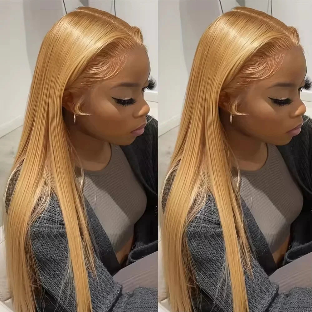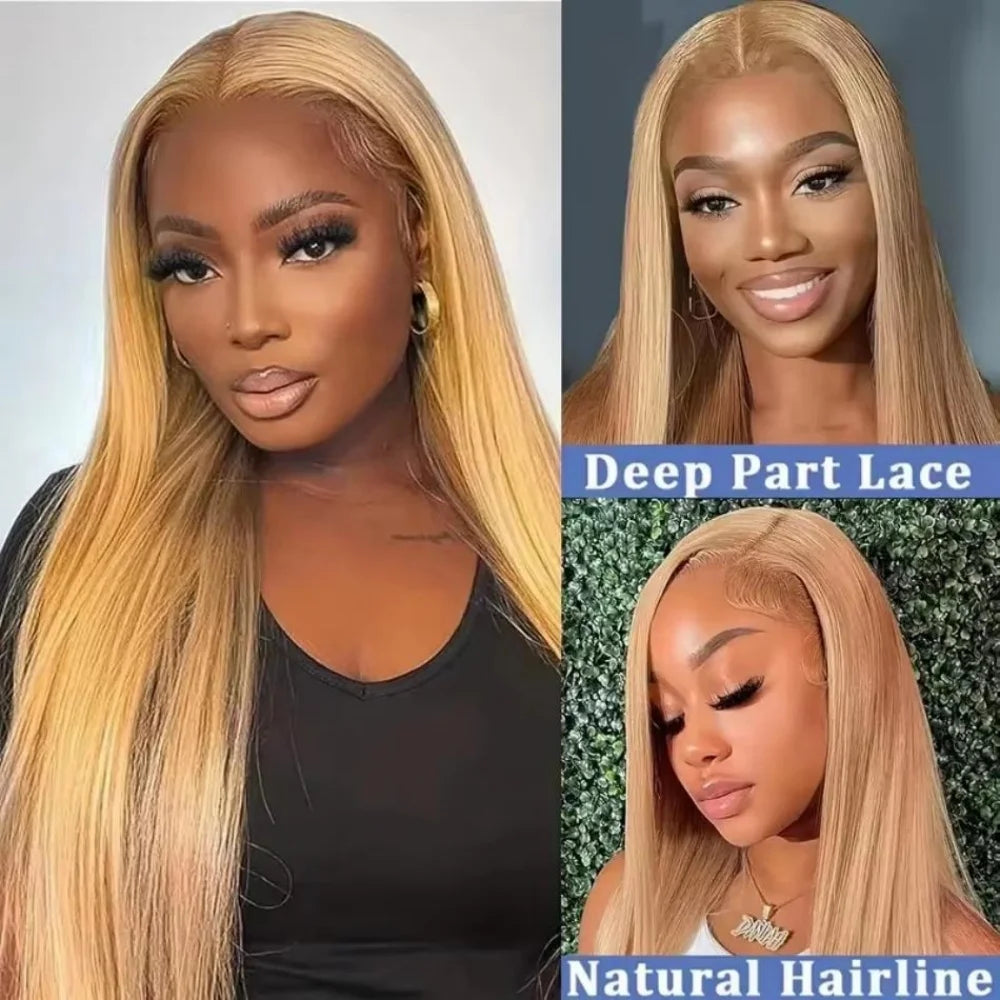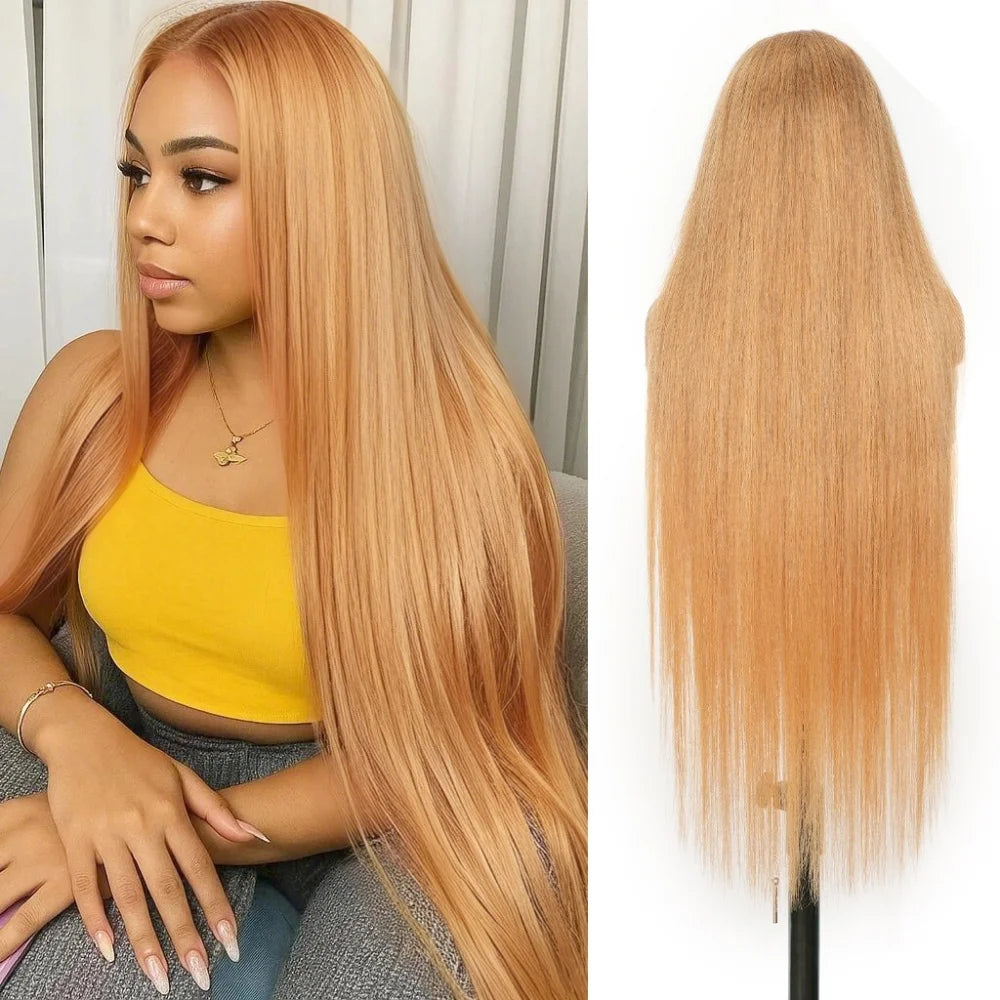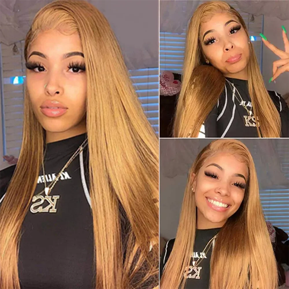 36 Inch Honey Blonde Human Hair Wig Straight 13x6 HD Lace Front Wig 180% Density 13x4 Lace Wigs Brazilian Human Hair 27# Color