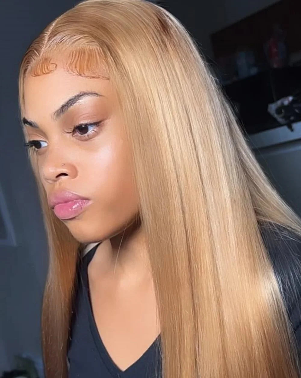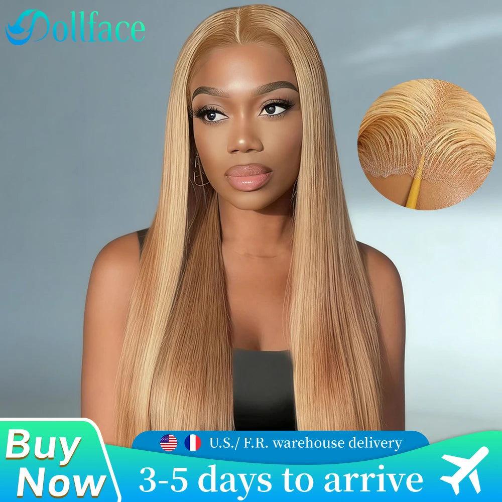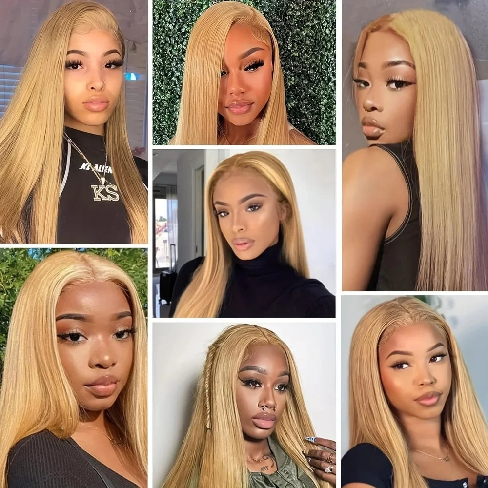 36 Inch Honey Blonde Human Hair Wig Straight 13x6 HD Lace Front Wig 180% Density 13x4 Lace Wigs Brazilian Human Hair 27# Color