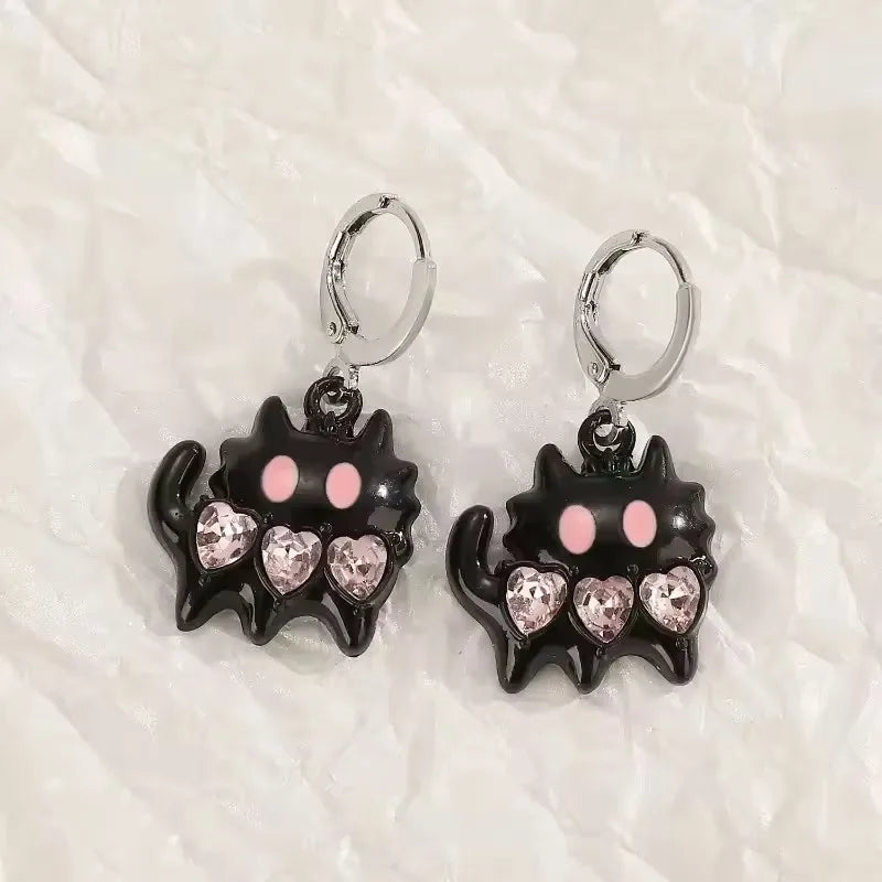 Gothic Vampire Bat Earrings for Women Man Fashion Witch Jewelry Accessories Red Crystal Vintage Bat Pendant Ear Hooks