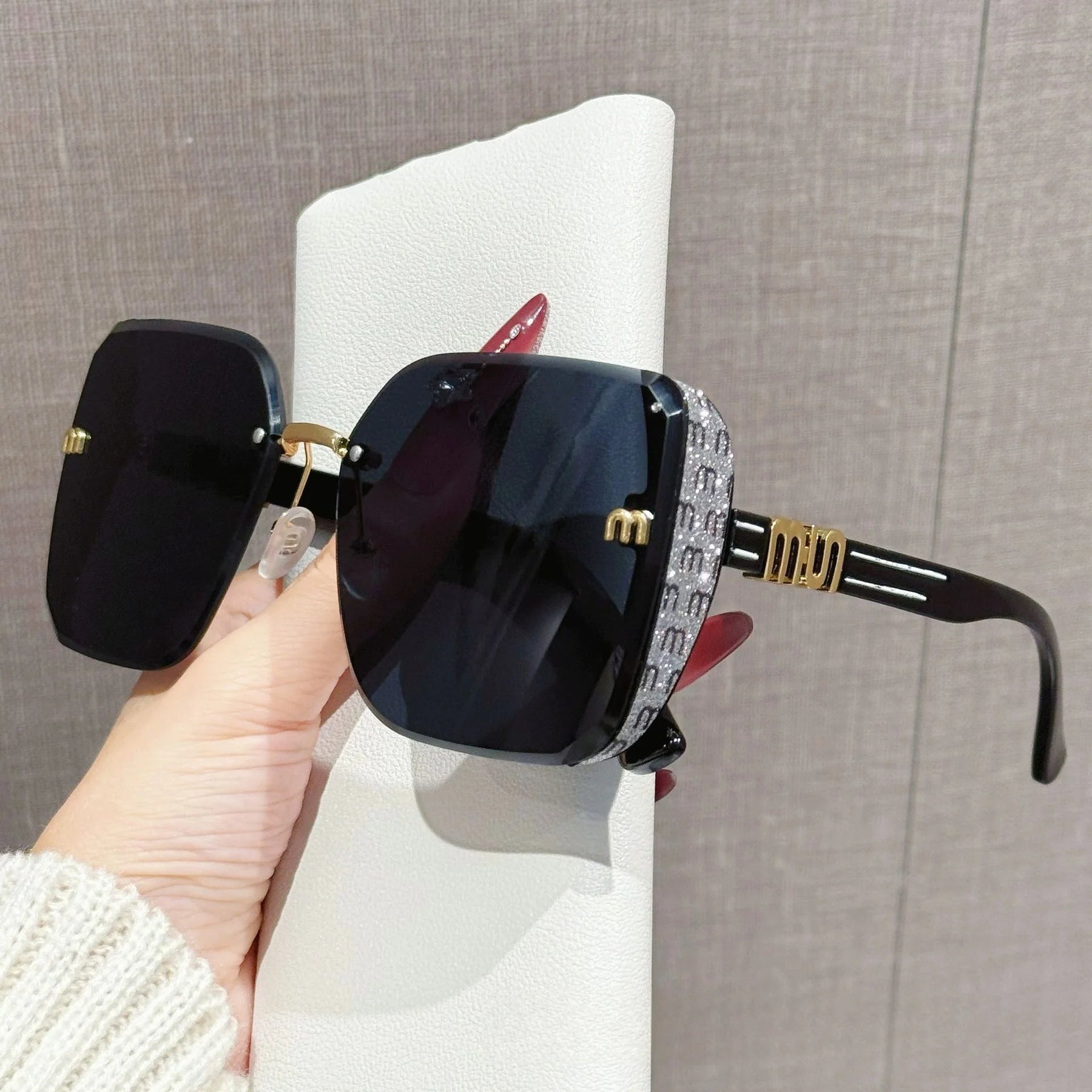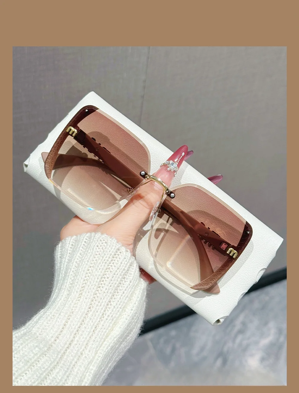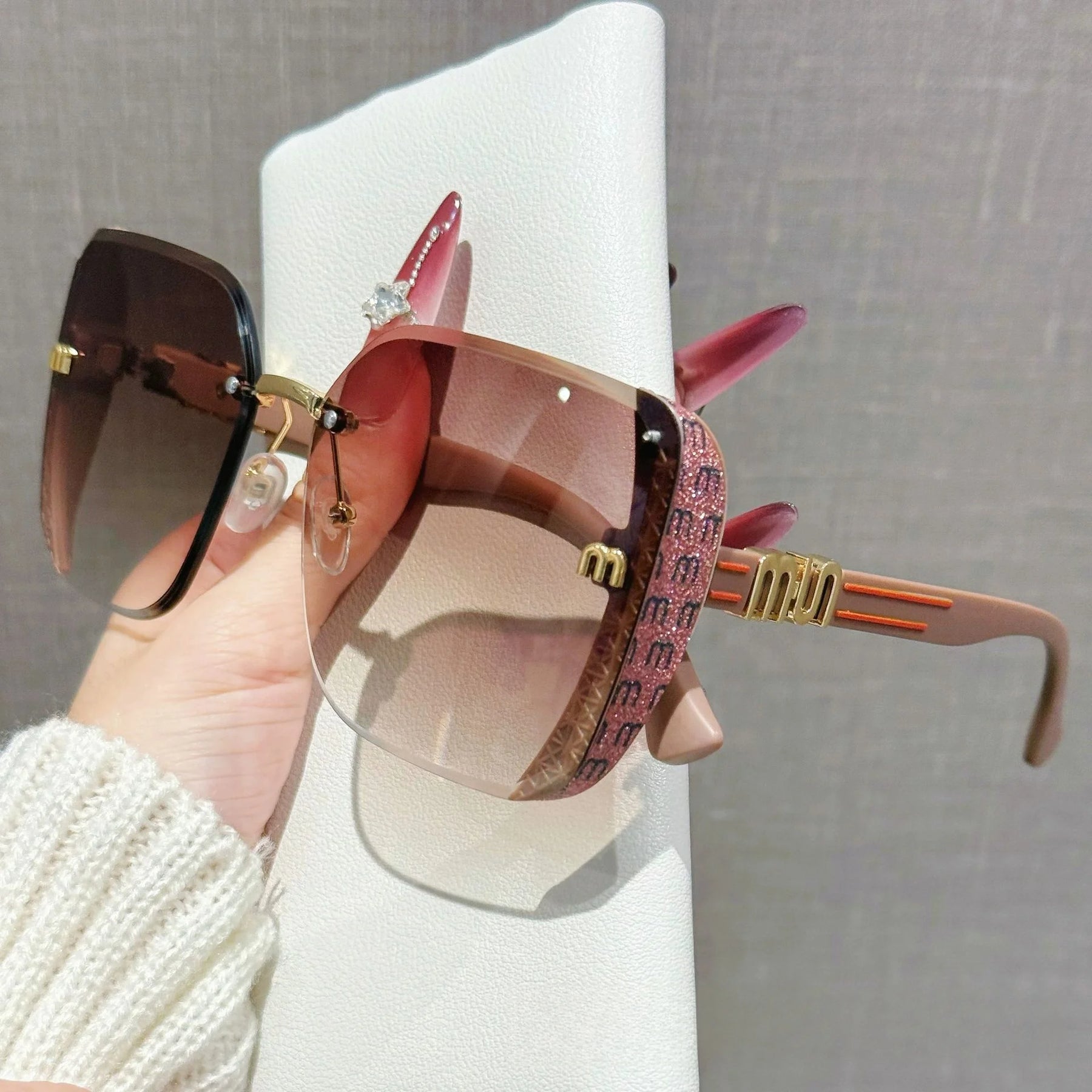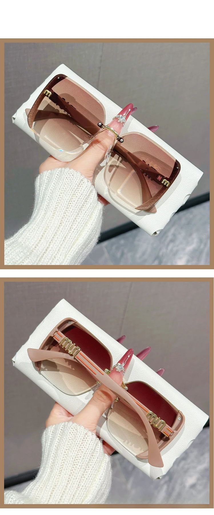Gradient Tea Half Frame Cut Edge Sunglasses for Women Fine Glitter Light Luxury Letter Design New Hot Selling Fashion Accessory