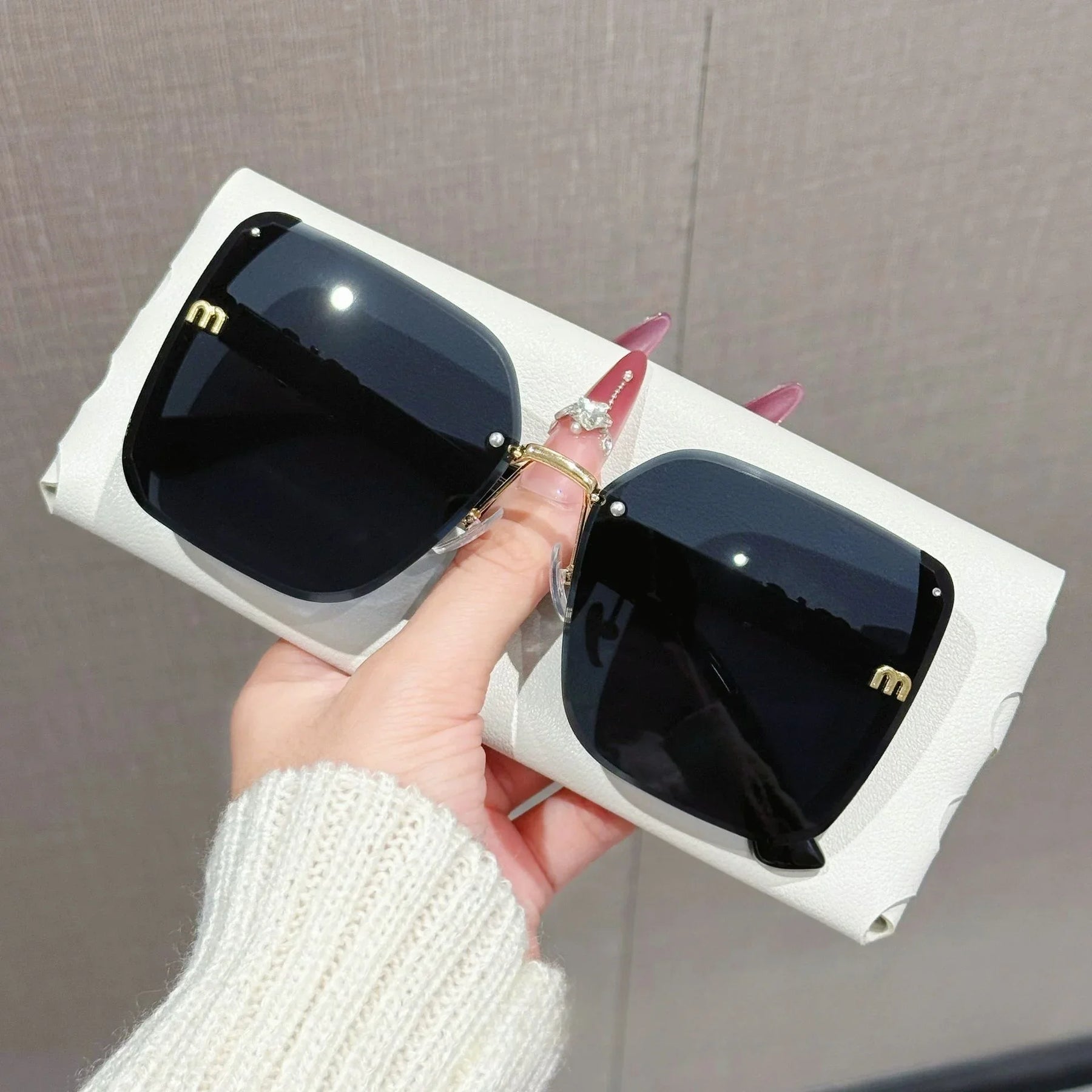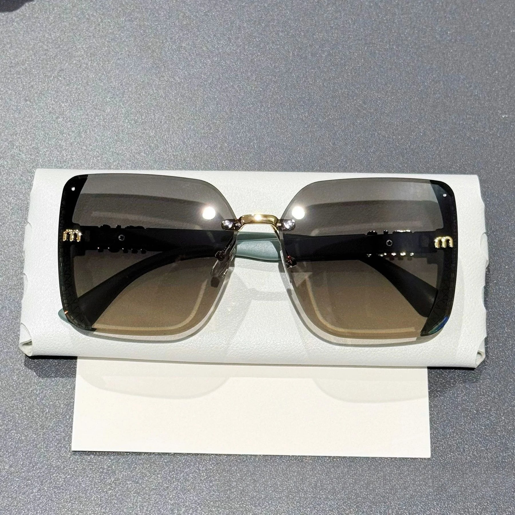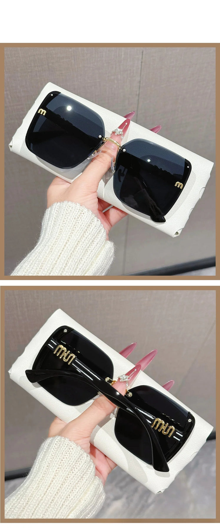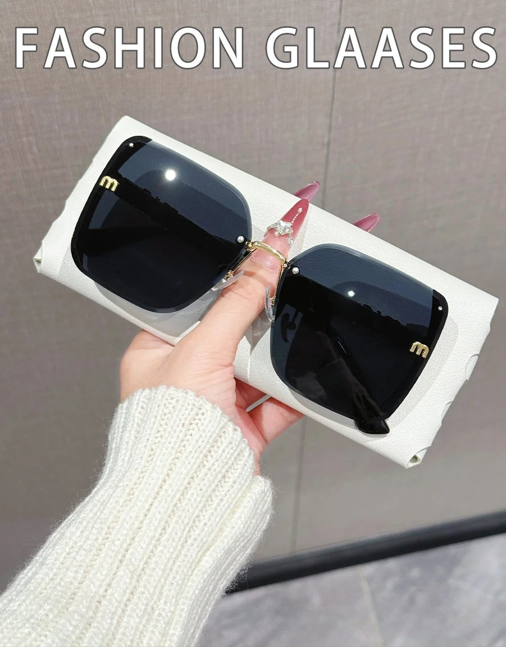 Gradient Tea Half Frame Cut Edge Sunglasses for Women Fine Glitter Light Luxury Letter Design New Hot Selling Fashion Accessory