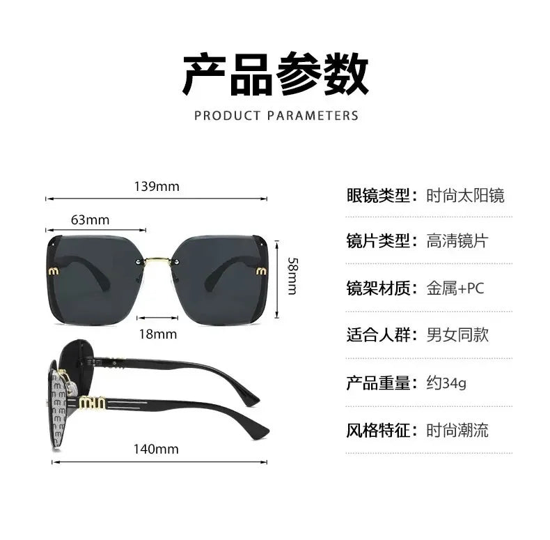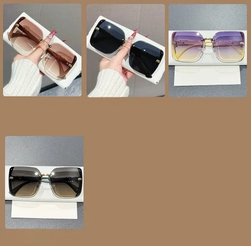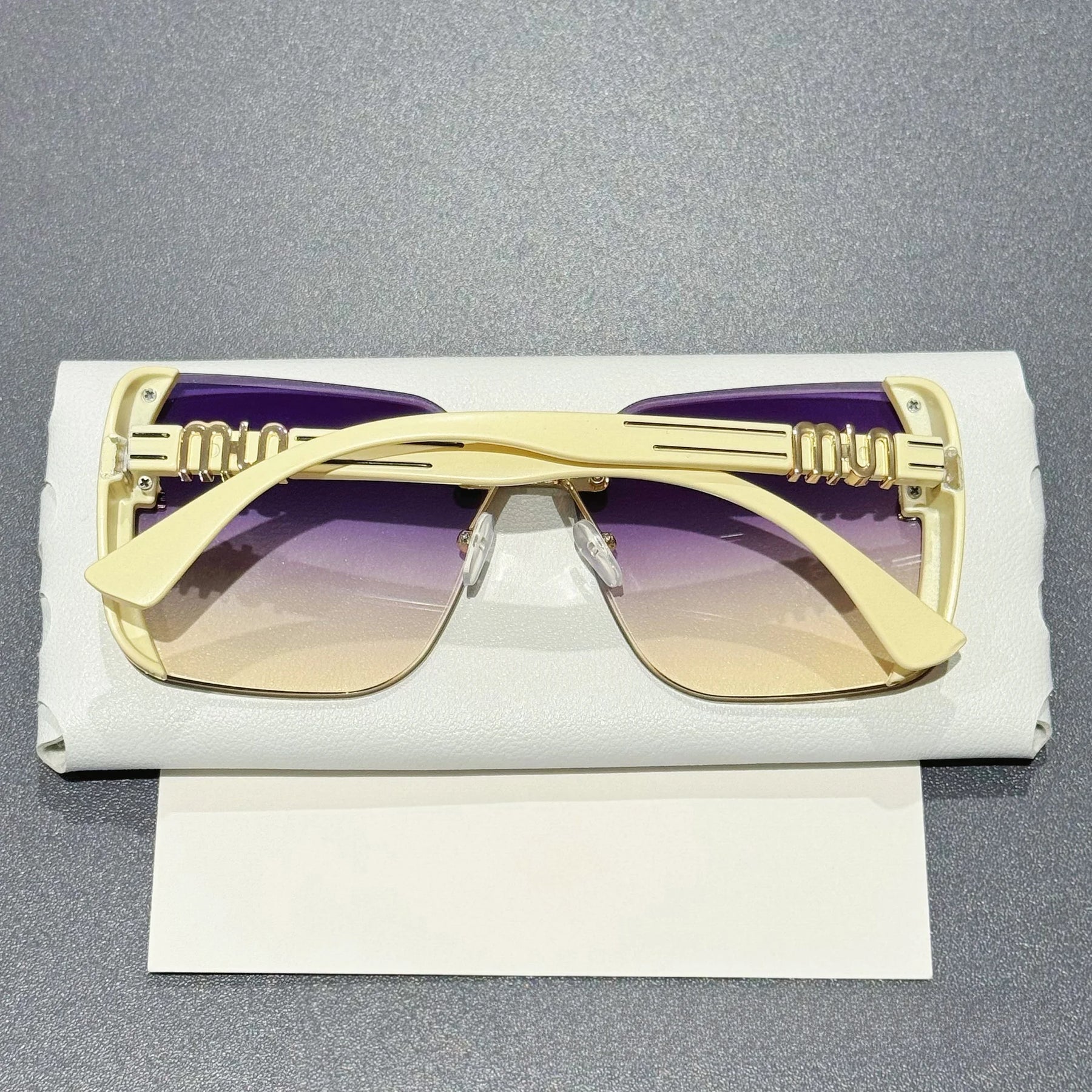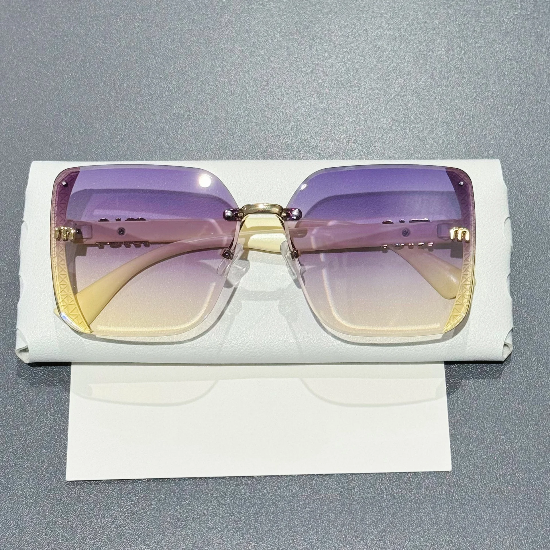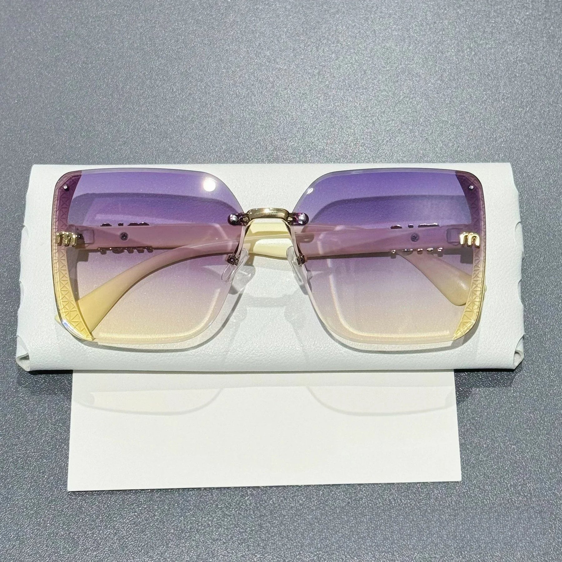 Gradient Tea Half Frame Cut Edge Sunglasses for Women Fine Glitter Light Luxury Letter Design New Hot Selling Fashion Accessory