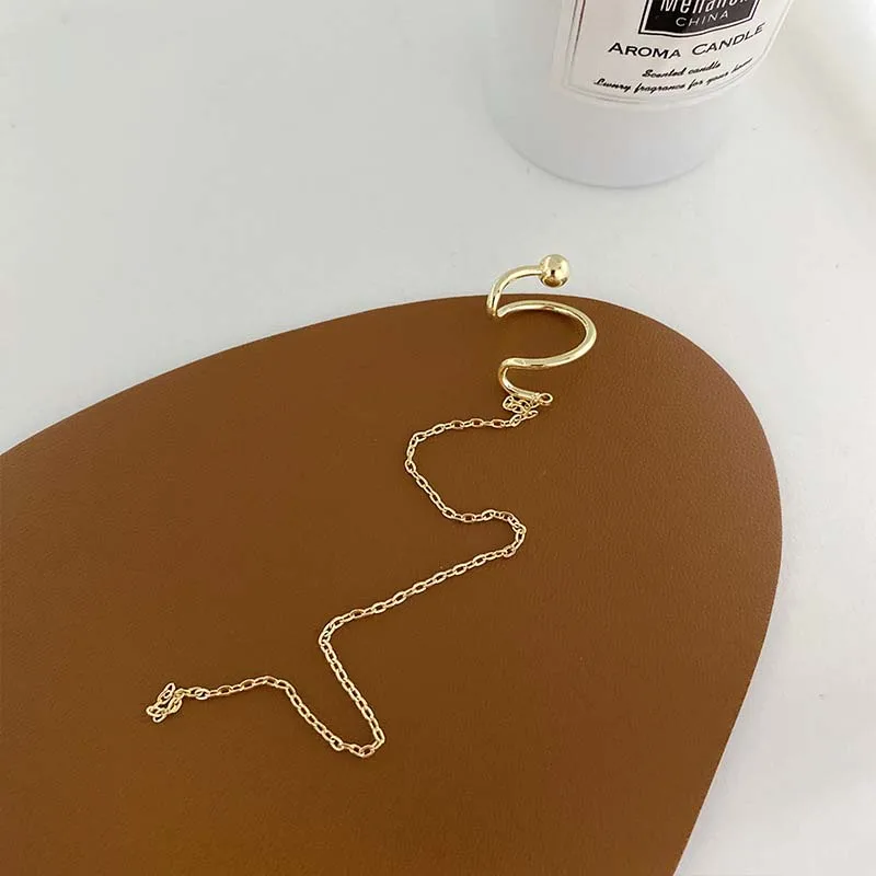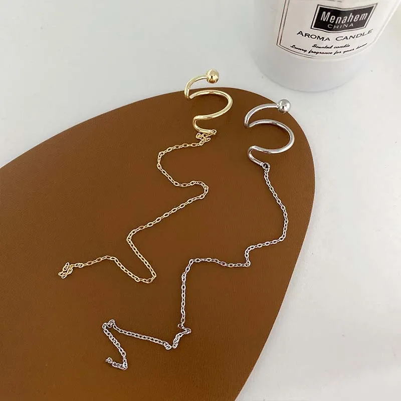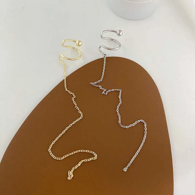 Korean Gold Silver Color Long Chain Tassel Ear Clip For Women Simple Metal Non Piercing Fake Cartilage Clip Earrings Jewelry