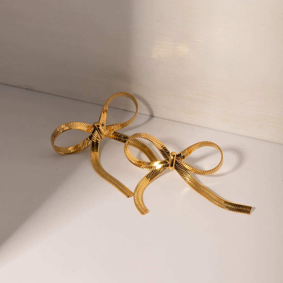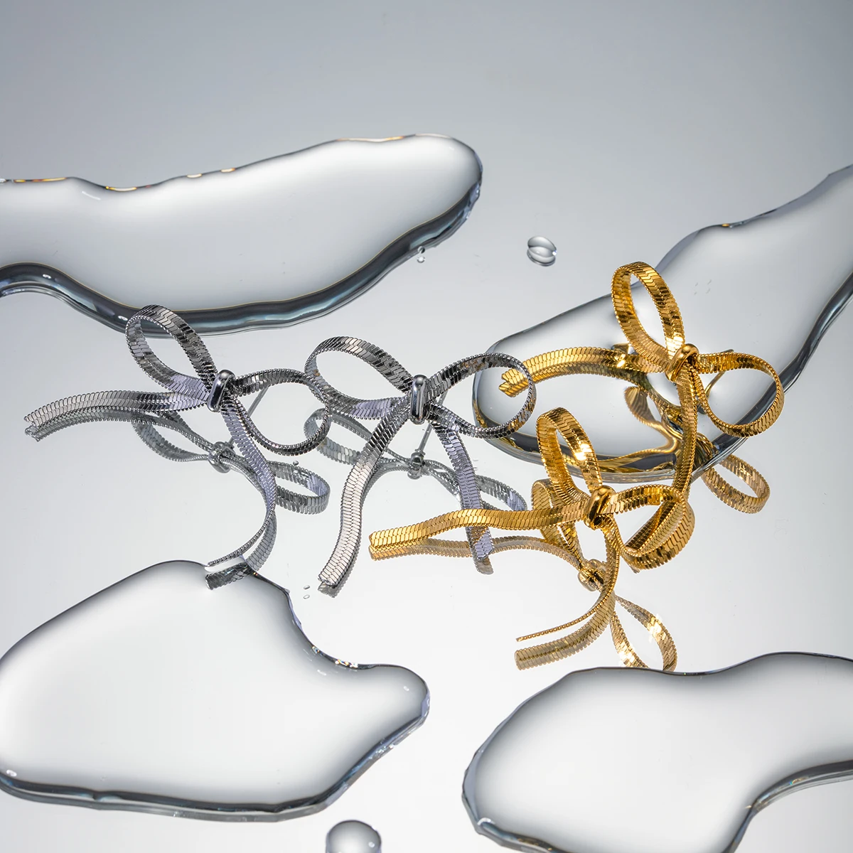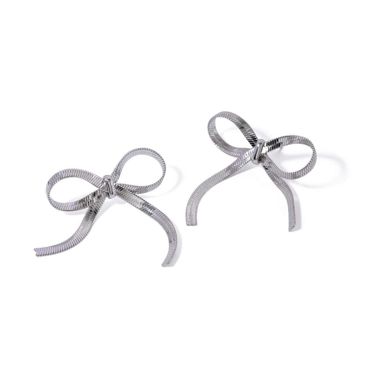 Youthway Stainless Steel Flat Snake Chain Bow Earrings For Women Waterproof Hypoallergenic Fashion Jewelry Party Gift